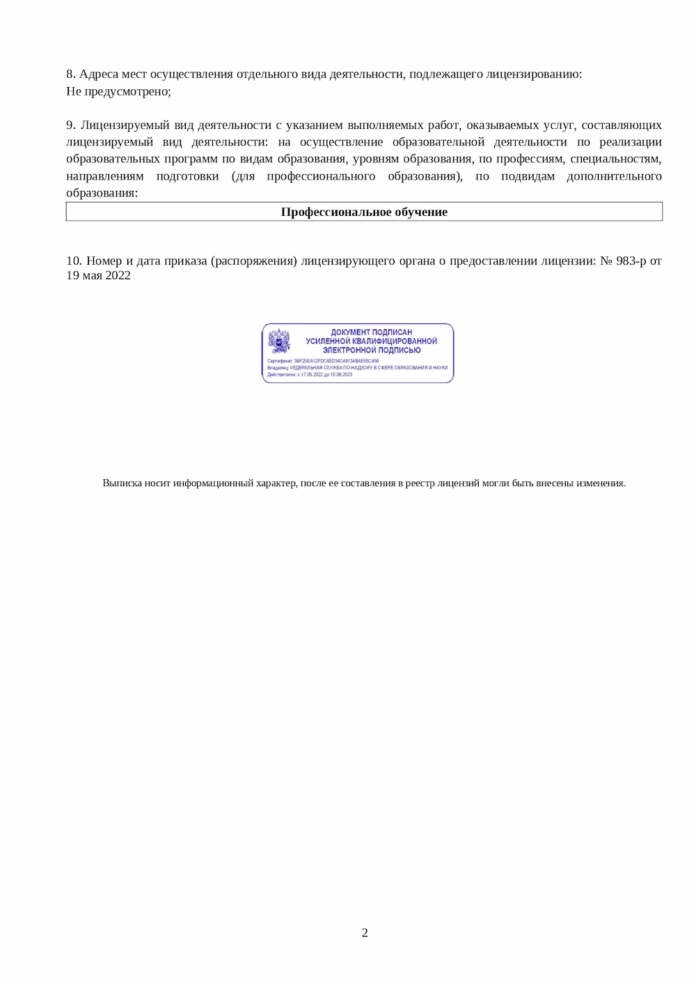 Лицензия No Л035-01271-78/00286392 от 19 мая 2022 выдана Департаментом образования и науки города Санкт-Петербурга
